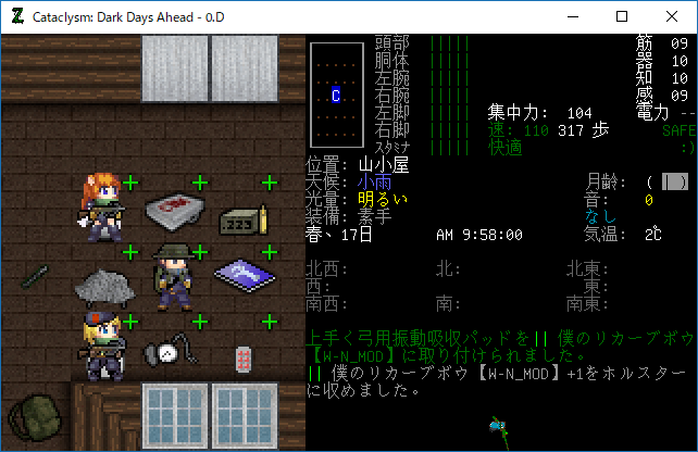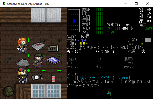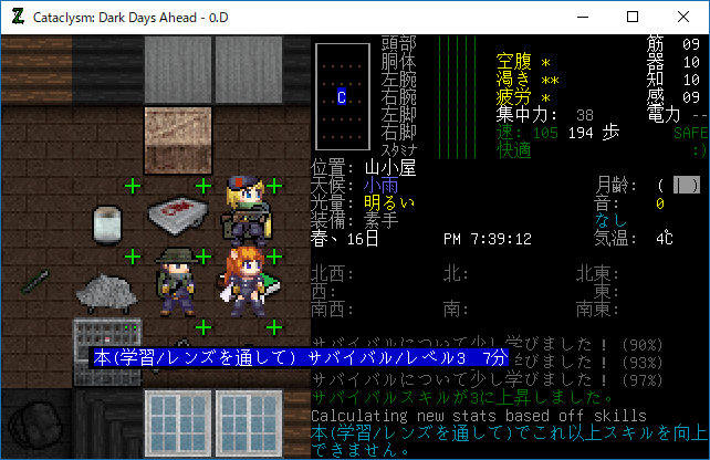 この投稿は「Cataclysm Dark Days Ahead」のプレイ日記です。毎日更新をします。目次はこちら。