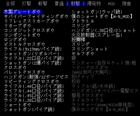 現在製作可能な射撃武器は上の画像になった。この中から仲間に装備させるクロスボウ、自身が使う弓を選ぶのです。和弓は強すぎるので今のところは封印しておこう。