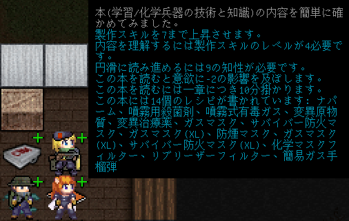 前回の探索で2冊の学習本を回収したようです。レシピを知りたいからサクッと読んでみましょう。個人的には化学兵器のレシピが気になります。