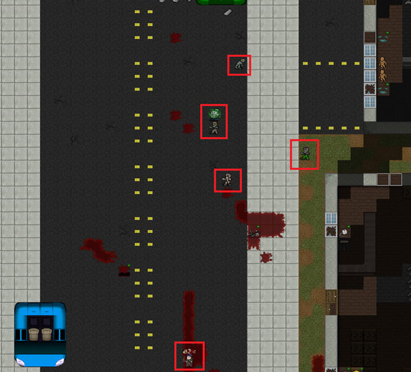現在地は町の南にある平凡な道路だ。たかが1本の道路でこんなに大規模な戦闘になるなんて酷い(泣)。交差点に行ったら視界内に30体くらいのゾンビが生成されそうだな。