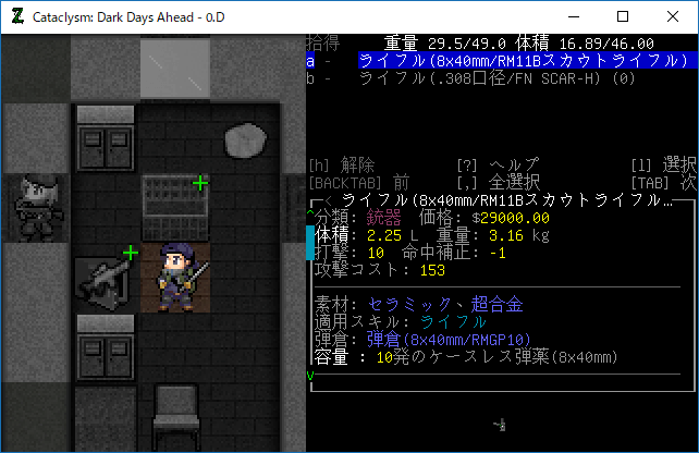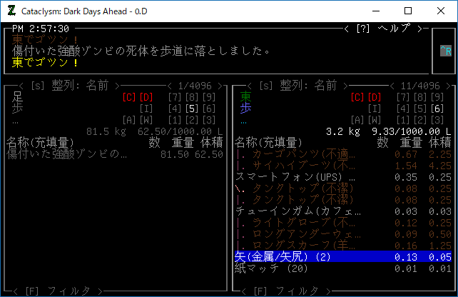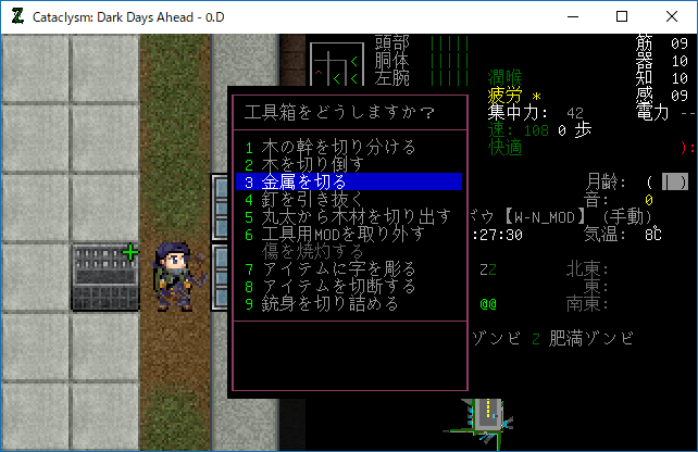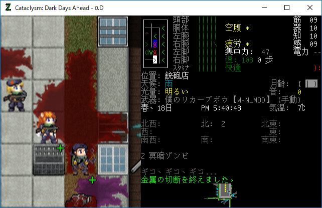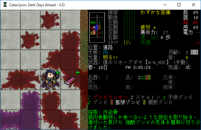 この投稿は「Cataclysm Dark Days Ahead」のプレイ日記です。毎日更新をします。目次はこちら。