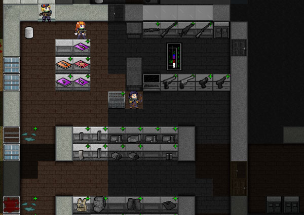 今まで漁った店と同じく銃保管庫が置かれています。強そうな銃が手に入るのかしら。現状はクロスボウの威力が30~40もあります。威力100くらいのライフルが欲しいっす。