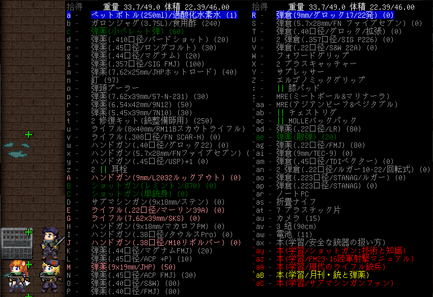鉄砲店から回収したアイテムは上の画像です。ライフル(7.62×39mm/SKS)は強そうだよな。何冊か銃器の学習本を拾うことができました。