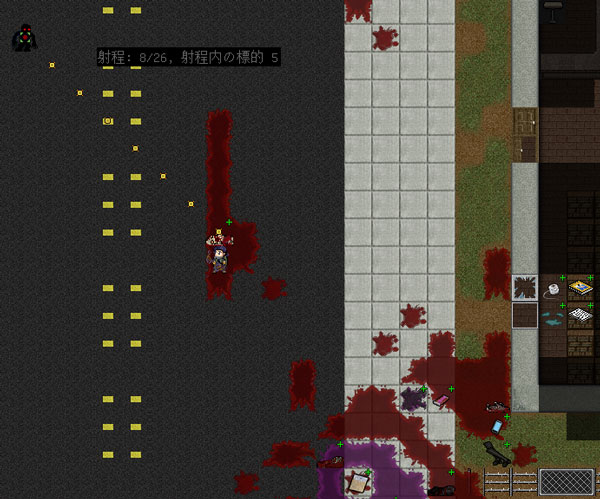 図書館の周辺にいたゾンビを全滅させました。まだゾンビは北に2~3匹いるが放置だ。北へ向かって視界内に足の速いゾンビが生成されたら悲しいからな。