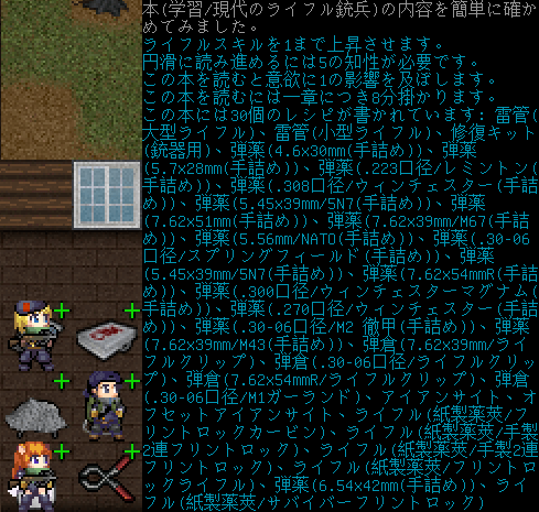 『学習/現代のライフル銃兵』は無いよりはマシと言った内容かな。未習得のレシピがあればラッキーといった印象だ。この本を読んでRikaのライフルスキルを1に鍛えるのはアリだろう。