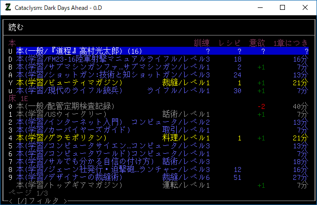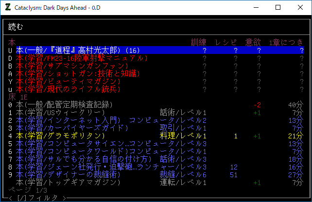 この投稿は「Cataclysm Dark Days Ahead」のプレイ日記です。毎日更新をします。目次はこちら。