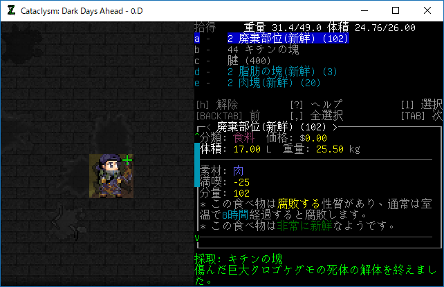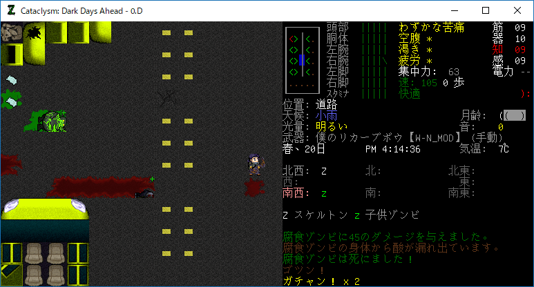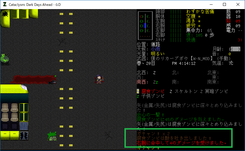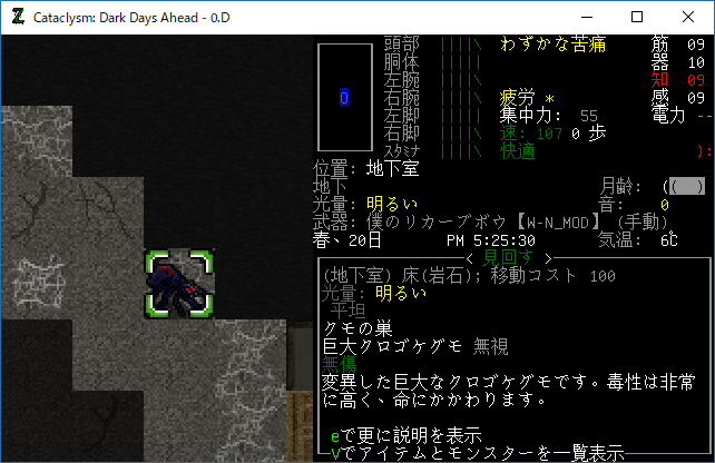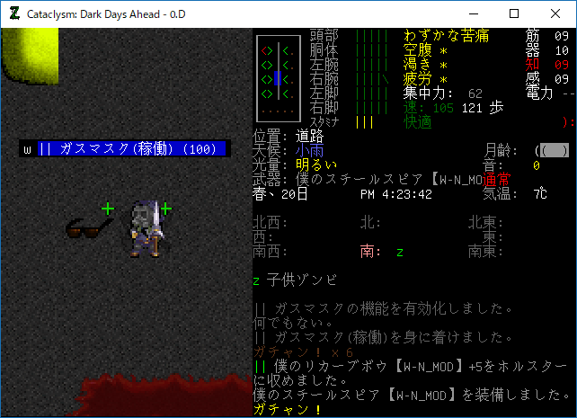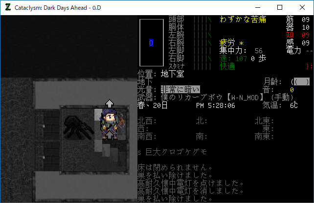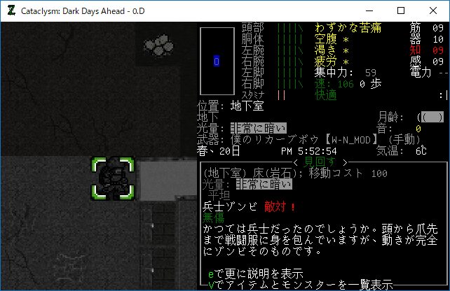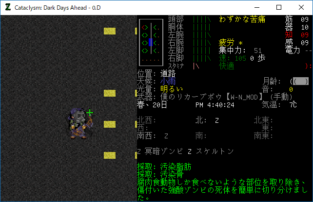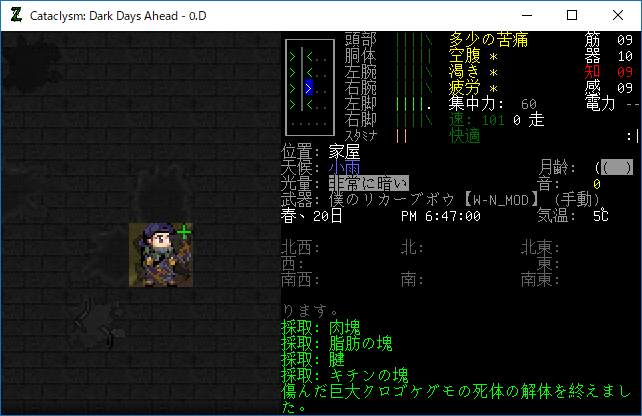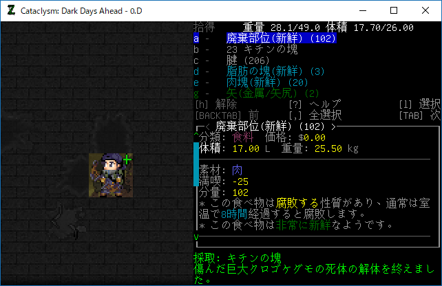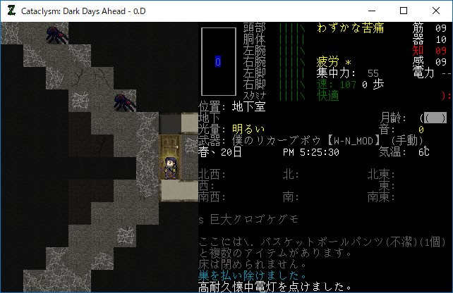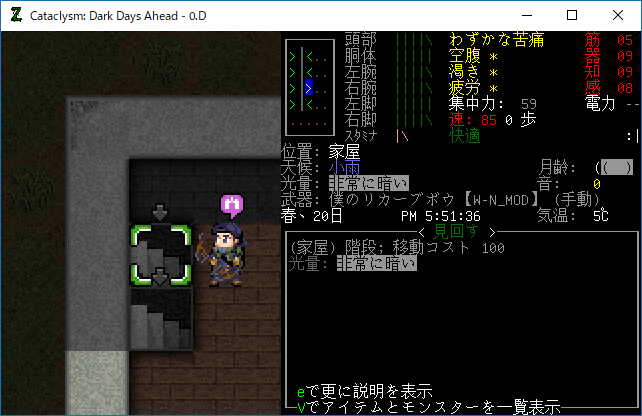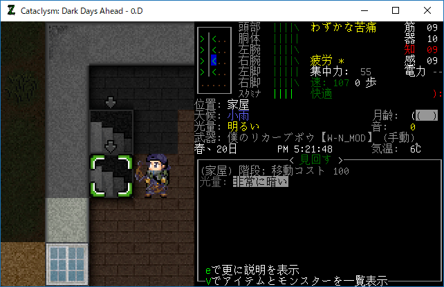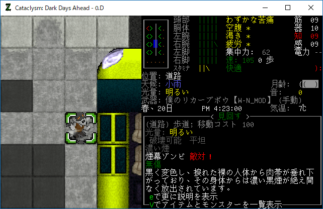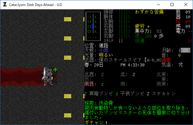 この投稿は「Cataclysm Dark Days Ahead」のプレイ日記です。毎日更新をします。目次はこちら。