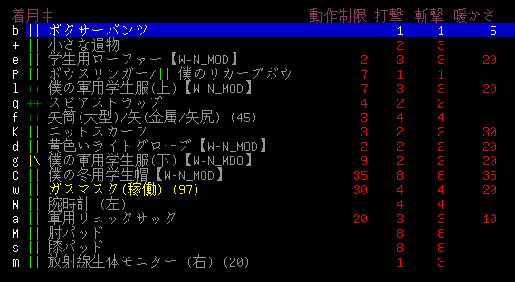 この時の防具は上の画像です。学生服下が破損していやがる。どうして煙幕ゾンビは下半身ばかり狙ってくるのかね。そんなに俺のパンツを見たかったの?