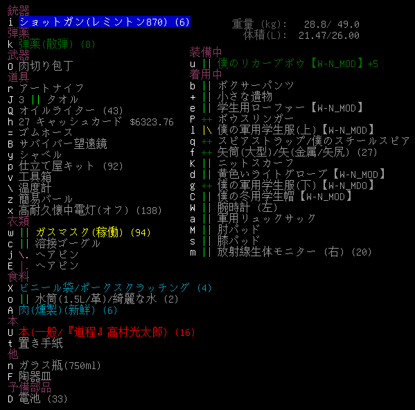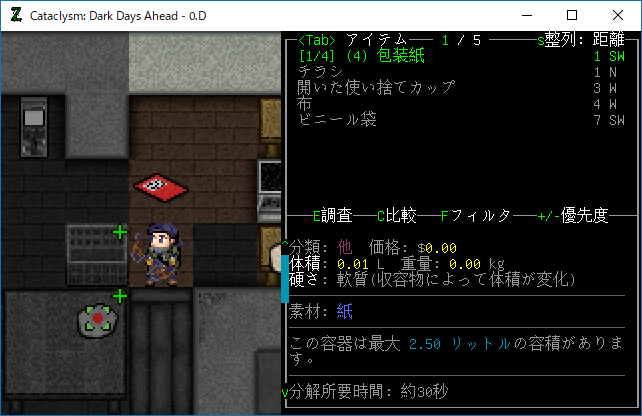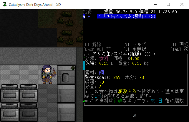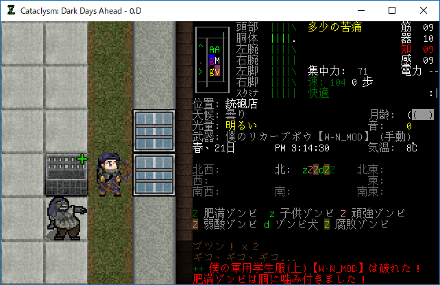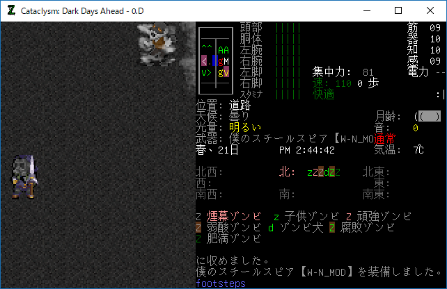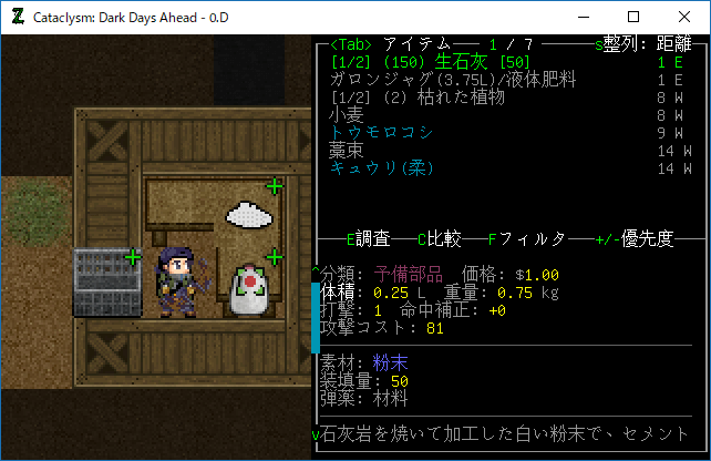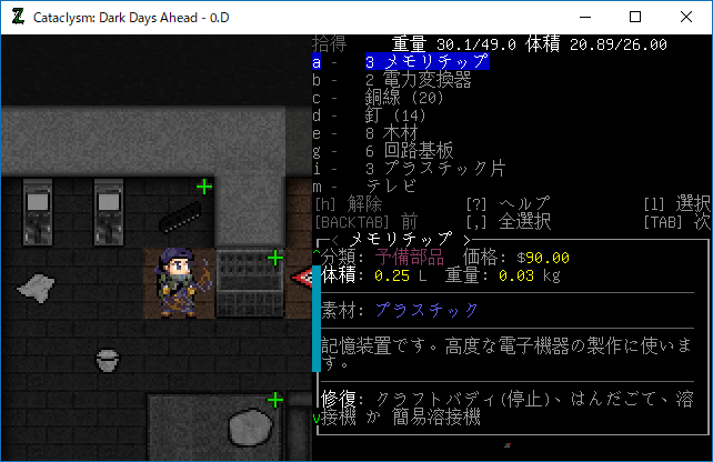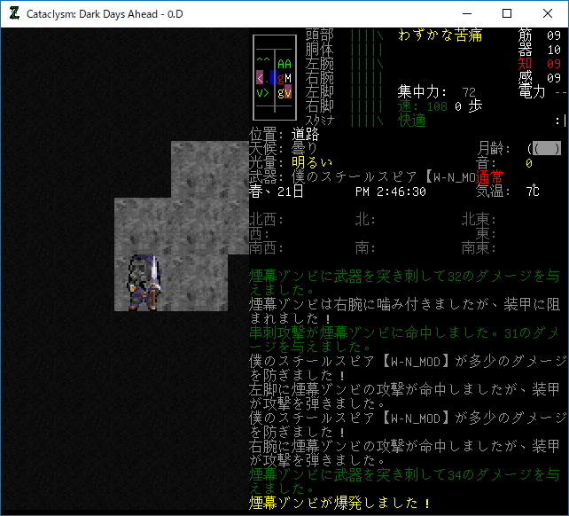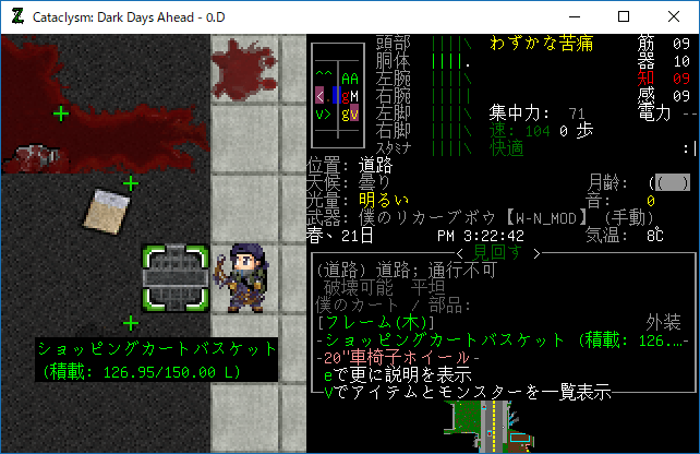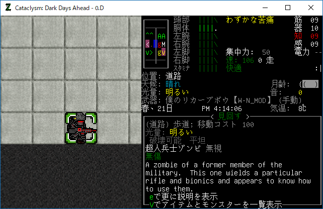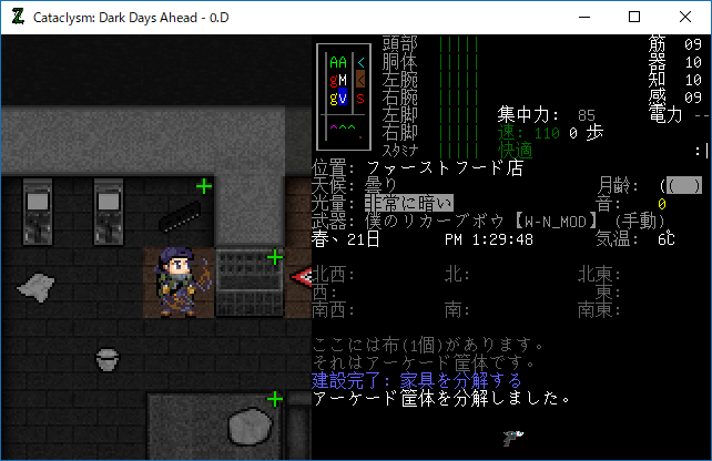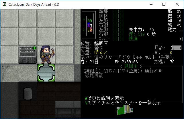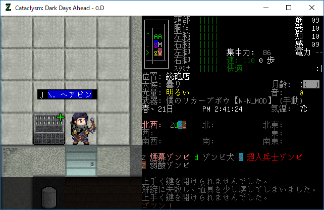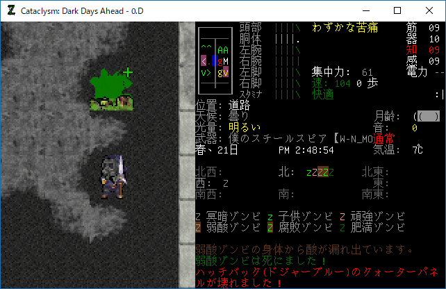 この投稿は「Cataclysm Dark Days Ahead」のプレイ日記です。毎日更新をします。目次はこちら。