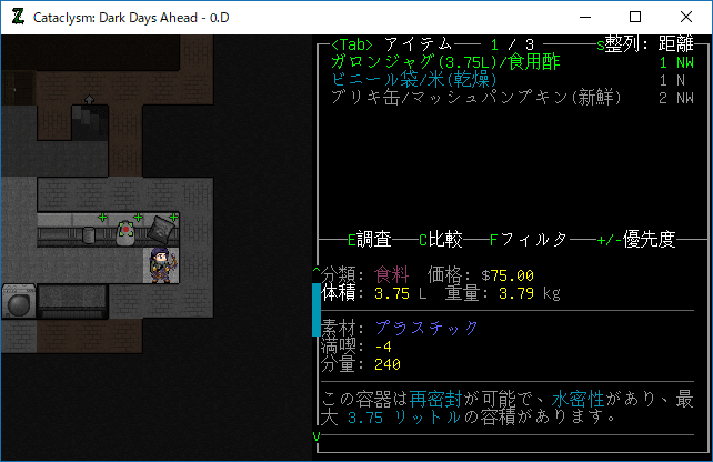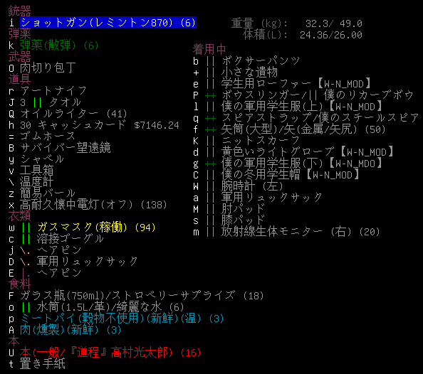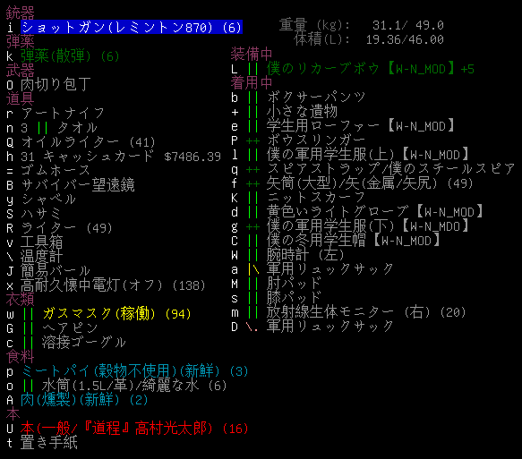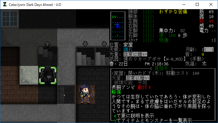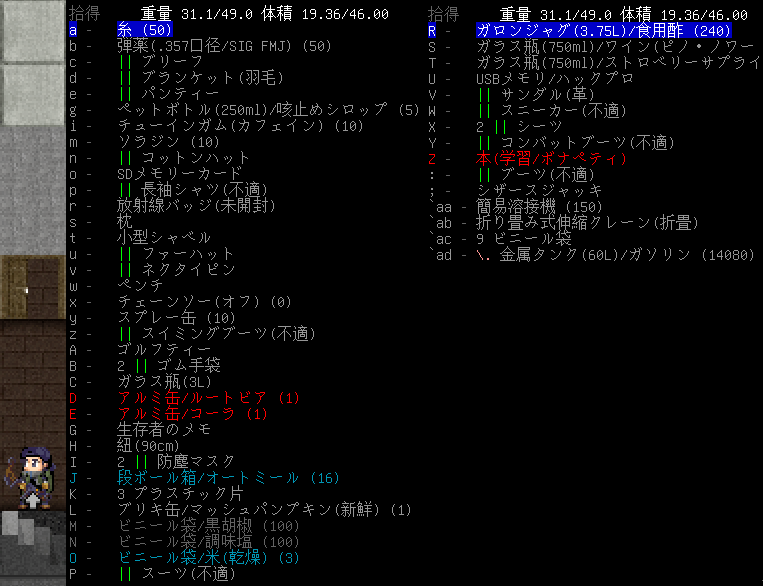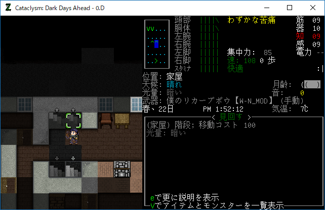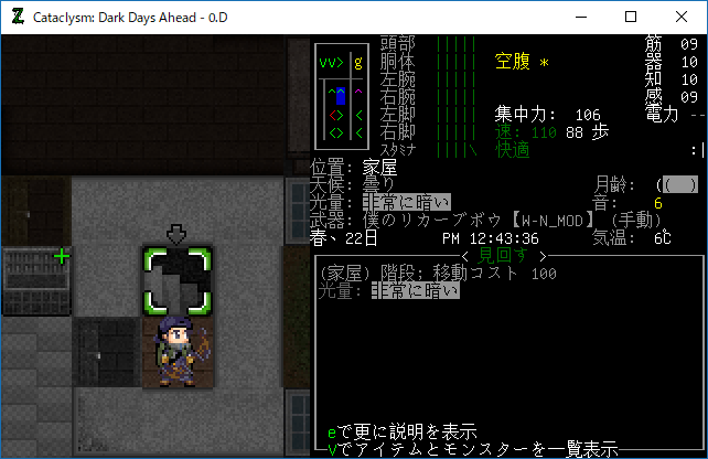 この投稿は「Cataclysm Dark Days Ahead」のプレイ日記です。毎日更新をします。目次はこちら。