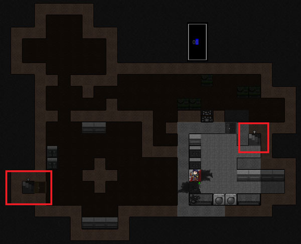地下室の探索が終わりました。保存食をいくつも拾えたのでテンションが上がってきました。つーか、この地下室には2つの上り階段があるみたい。片方は先ほど降りてきた階段です(あたりまえ!)。