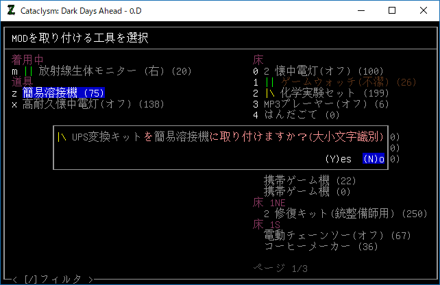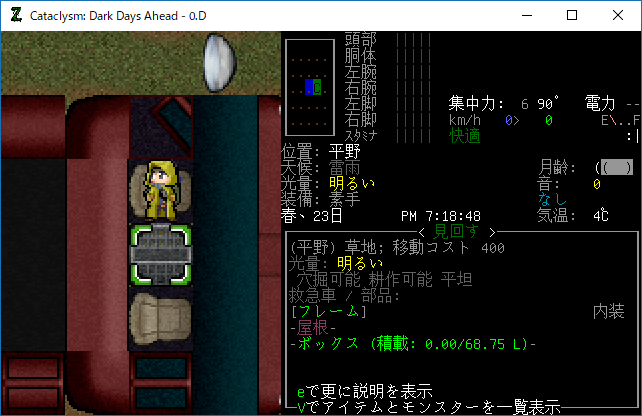この投稿は「Cataclysm Dark Days Ahead」のプレイ日記です。毎日更新をします。目次はこちら。