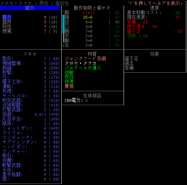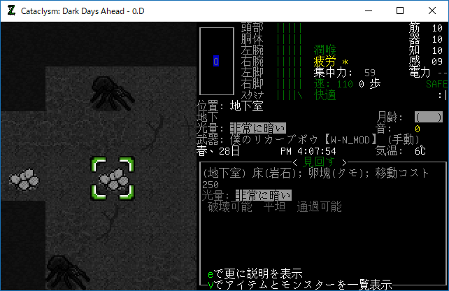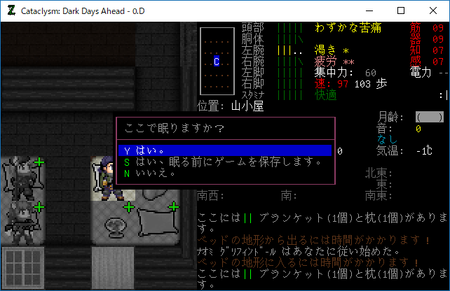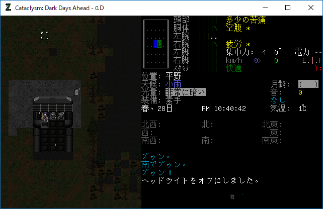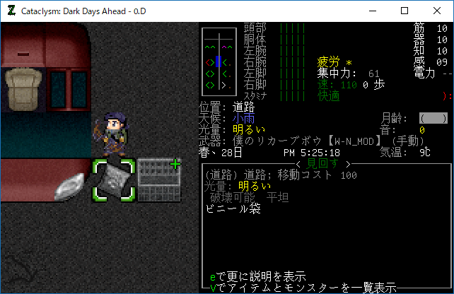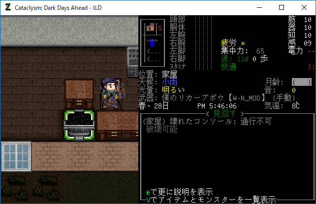 この投稿は「Cataclysm Dark Days Ahead」のプレイ日記です。毎日更新をします。目次はこちら。
