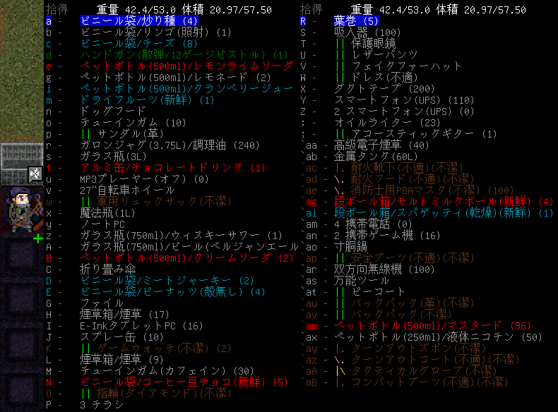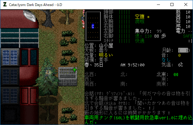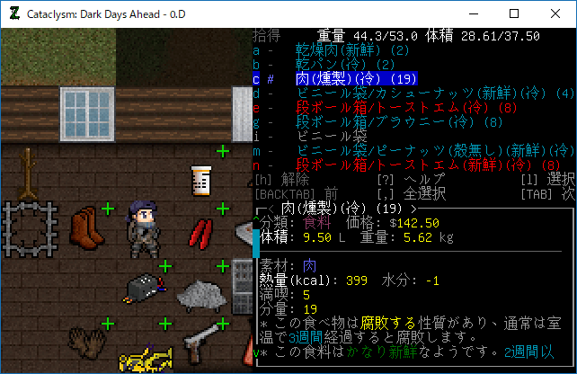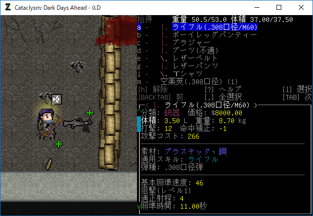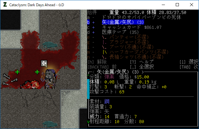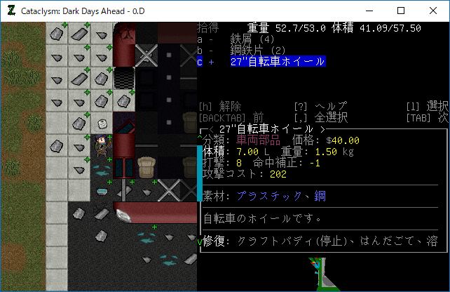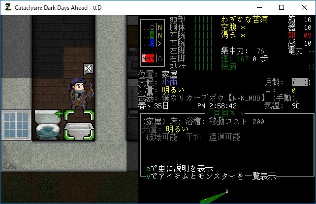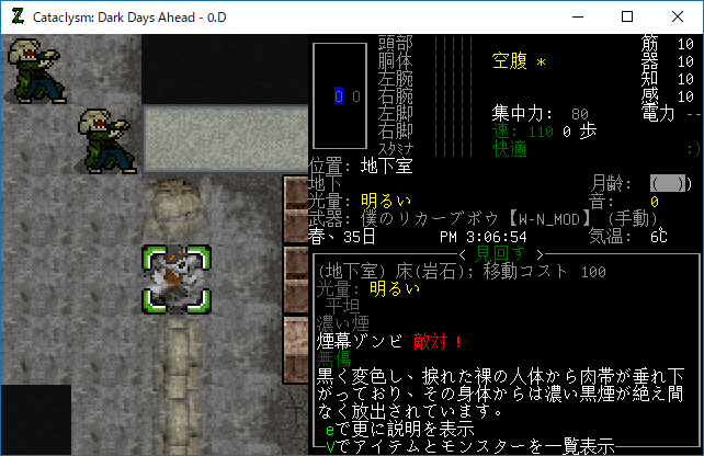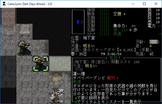 この投稿は「Cataclysm Dark Days Ahead」のプレイ日記です。毎日更新をします。目次はこちら。