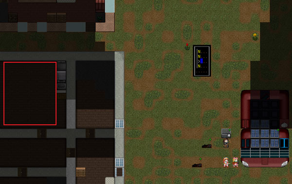 蜘蛛の巣の地下室は赤い四角で囲んだ場所にある(近い)。毒蜘蛛を狩った後は時間が余るだろうし道路に行きましょう。もう南地区にゾンビはいないので伸び伸びと探索をします。
