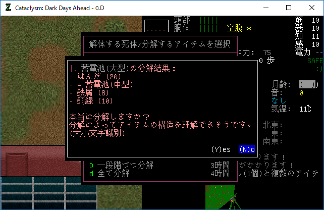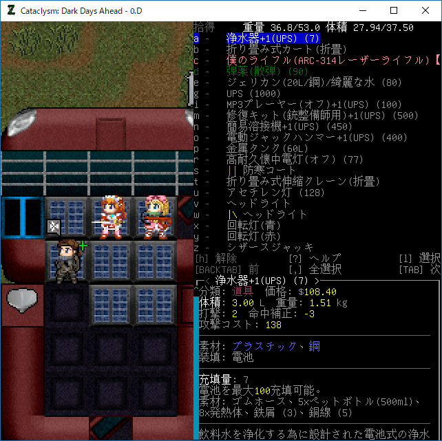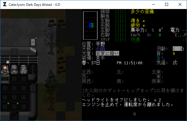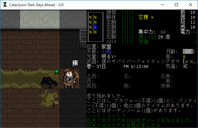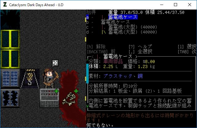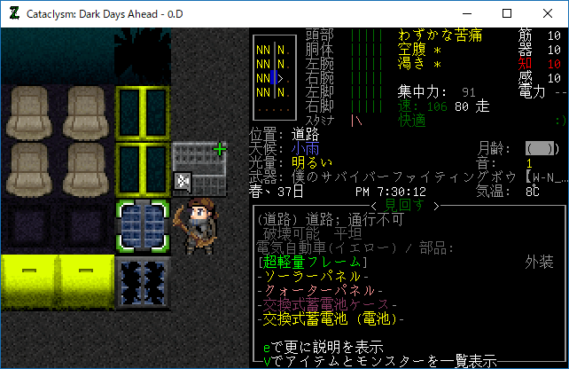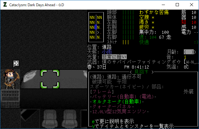 この投稿は「Cataclysm Dark Days Ahead」のプレイ日記です。毎日更新をします。目次はこちら。