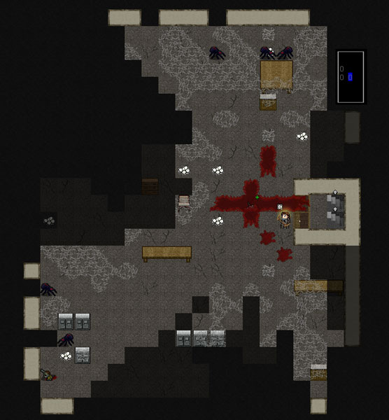 地下室がどうなっているのか調べてみよう。照明を付けながら覗いてみた時の様子は上の画像です。残っている蜘蛛は約5匹のようだな。こいつらを食い尽くしたら面倒なことになるぞ。
