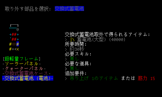 交換式蓄電池ケース内のバッテリーは30秒で取り外せます。蓄電池を分解すると銅線も回収できる。レスター中央区の探索でも積極的に回収しよう。