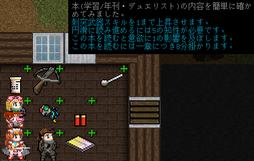 今回のプレイ日記はここで中断します。この時の能力値は上の画像です。学習本で製作スキルを上げたかったのになあ。結局は何の成長もしないまま次の探索に出発することになった。