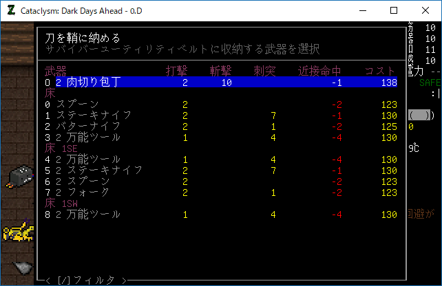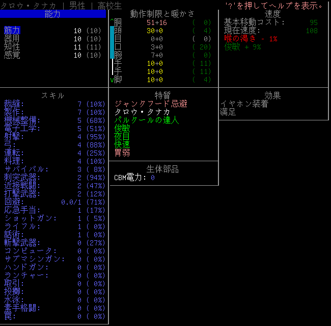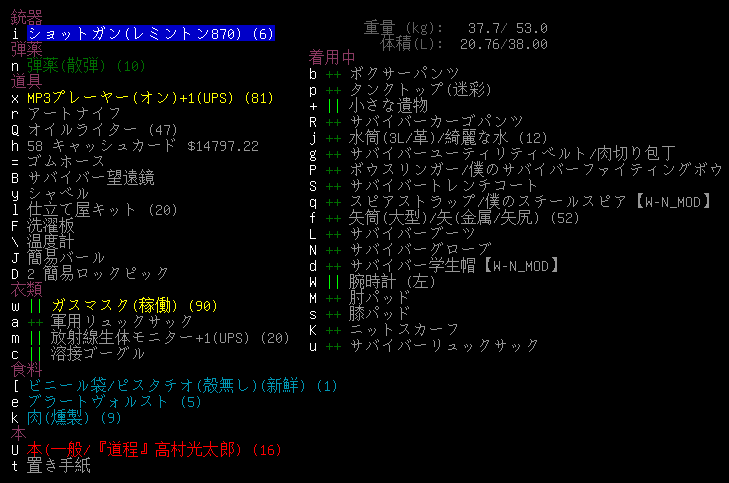 この投稿は「Cataclysm Dark Days Ahead」のプレイ日記です。毎日更新をします。目次はこちら。