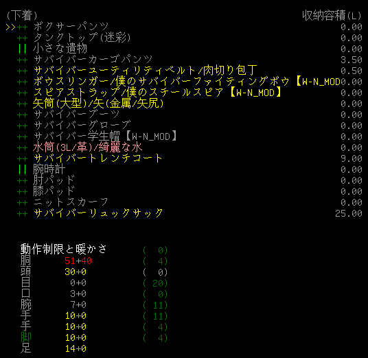装備を並び替えた:動作制限67