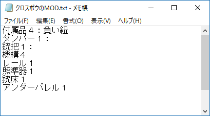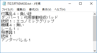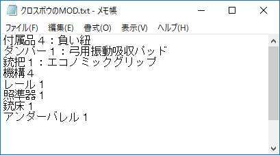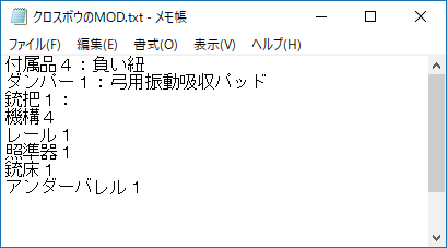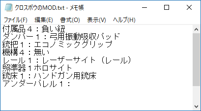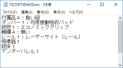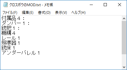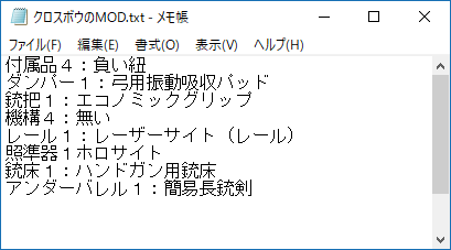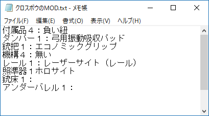 クロスボウに付けるMODが決まりました。いくつか抜けている箇所があるけど、ヨシとします。選んだものを拾い集めてみますね。