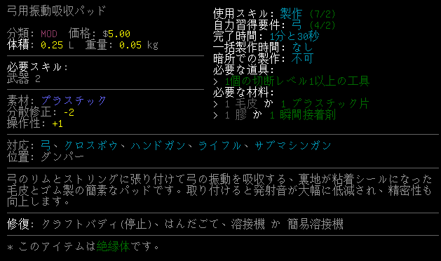 現時点で調達できる『ダンパー』は弓用振動吸収パッドだけだった。そんなに性能は高くないよな。これしかないので作ることにする。