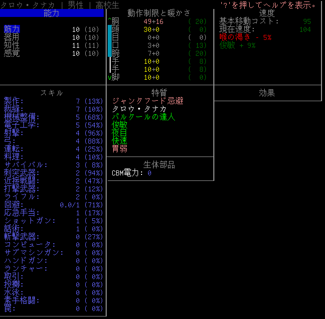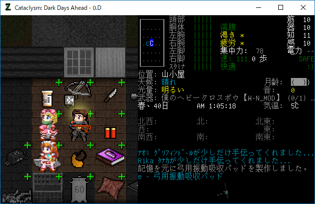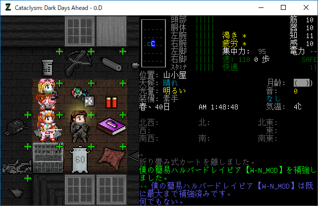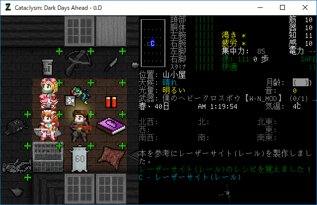 この投稿は「Cataclysm Dark Days Ahead」のプレイ日記です。毎日更新をします。目次はこちら。