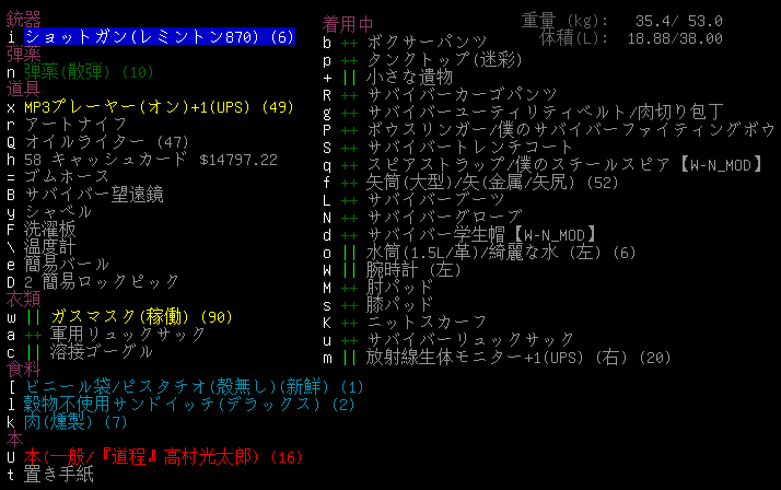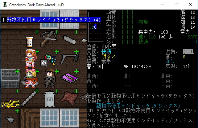 この投稿は「Cataclysm Dark Days Ahead」のプレイ日記です。毎日更新をします。目次はこちら。