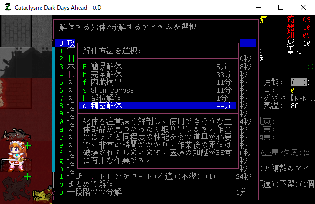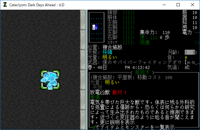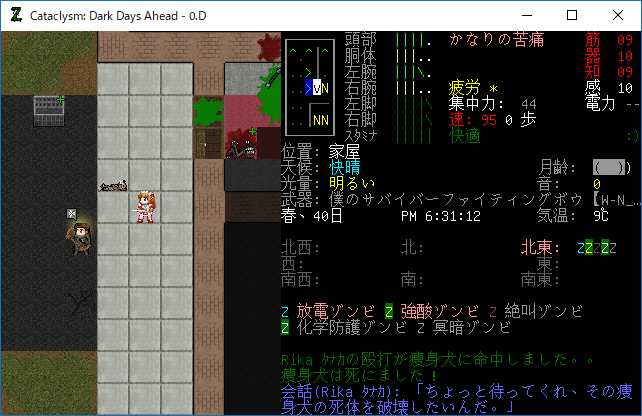 この投稿は「Cataclysm Dark Days Ahead」のプレイ日記です。毎日更新をします。目次はこちら