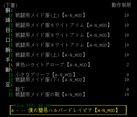 ケモミミの装備品は上の画像でした。ライトグローブ以外は傷一つ付いていません。さすがキチン製の戦闘用メイド服だ。ゾンビの集団に突撃してもなんともないぜ!次回は戦利品を山小屋に持ち帰ります。学習本を読んでレシピの確認をしよう。