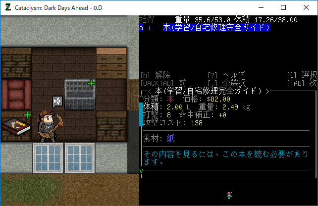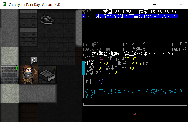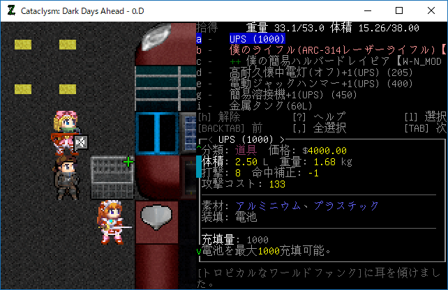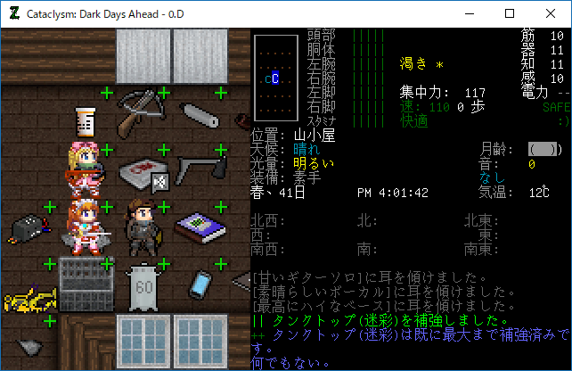 この投稿は「Cataclysm Dark Days Ahead」のプレイ日記です。毎日更新をします。目次はこちら。