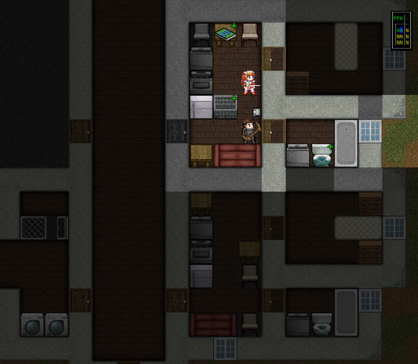 アパートの中をちょこっと漁ってみました(上の図)。うーむ、どんな施設なのか分かってきたぞ。『キッチン、トイレ、寝室』の組み合わせがいくつも並んでいるのだ。置いてあるアイテムは部屋主の趣向によって異なるから略奪していて楽しい。