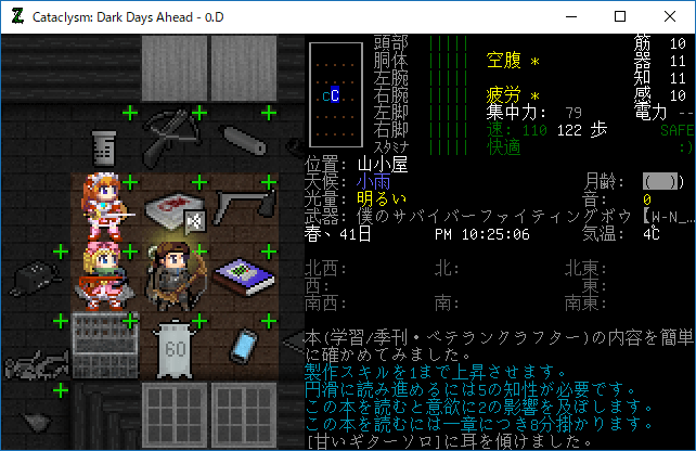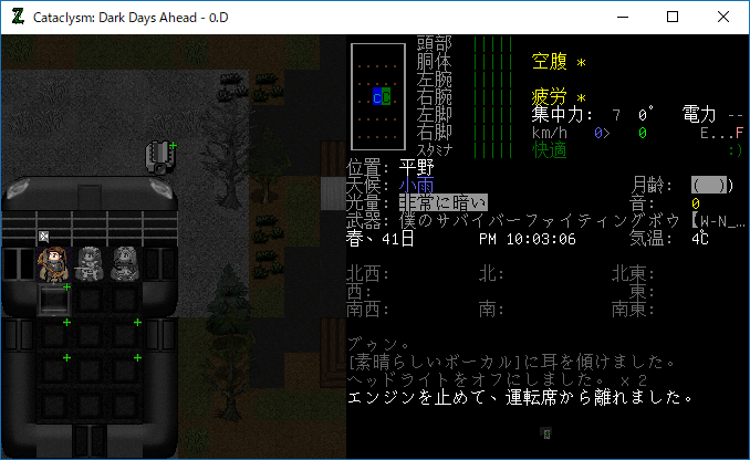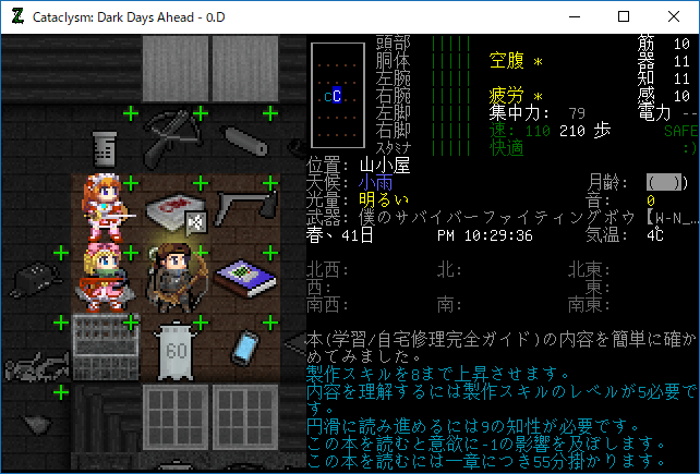 この投稿は「Cataclysm Dark Days Ahead」のプレイ日記です。毎日更新をします。目次はこちら。