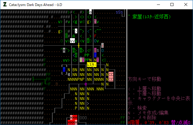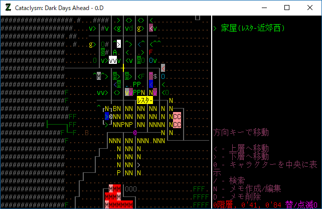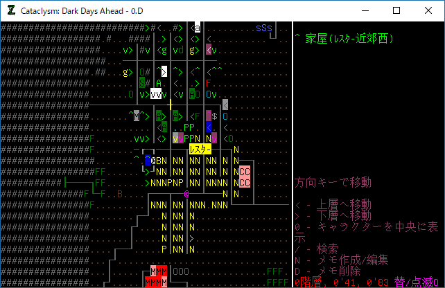 Cataclysmのプレイ日記を始めます。盗賊達の討伐が完了しました。これよりレスター西地区の探索を再開いたします。もう夕方になってしまったが出来るかぎり多くの建物を調べたい。