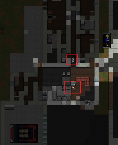 交差点の先にある西地区には4軒の家屋があります(上の図)。この一帯を制圧すれば綺麗にマップが埋まることになる。今回はこの4軒の家屋を漁って終了後しようか。