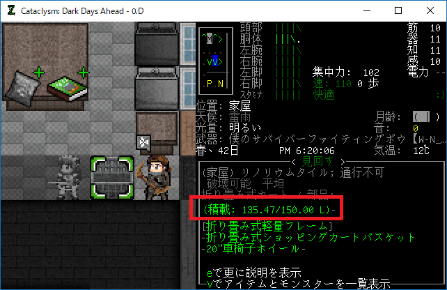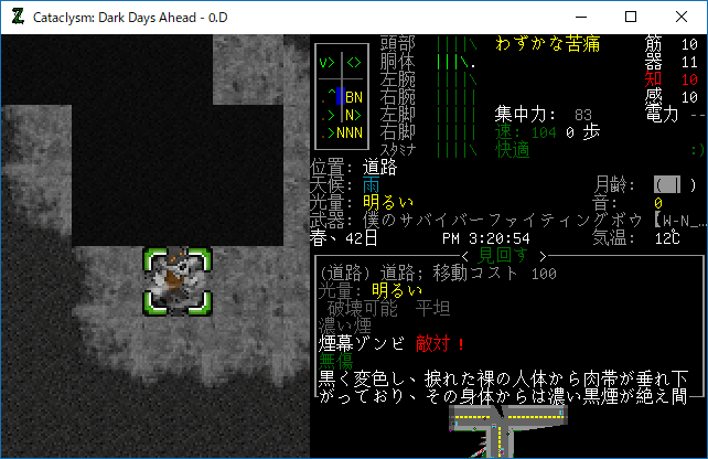 この投稿は「Cataclysm Dark Days Ahead」のプレイ日記です。毎日更新をします。目次はこちら。