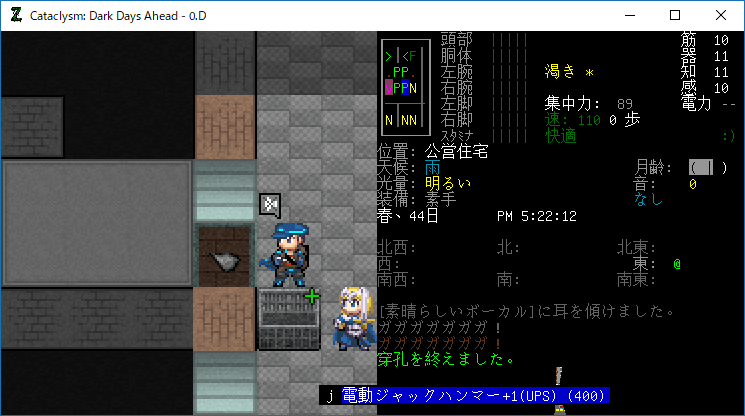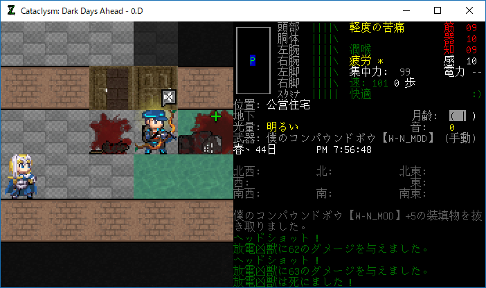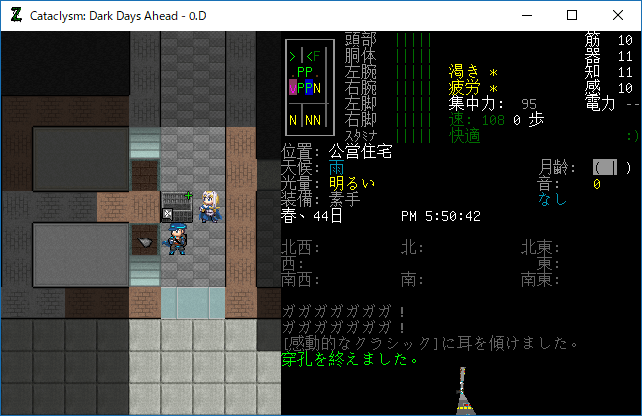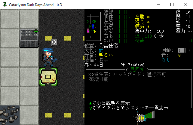 この投稿は「Cataclysm Dark Days Ahead」のプレイ日記です。毎日更新をします。目次はこちら。