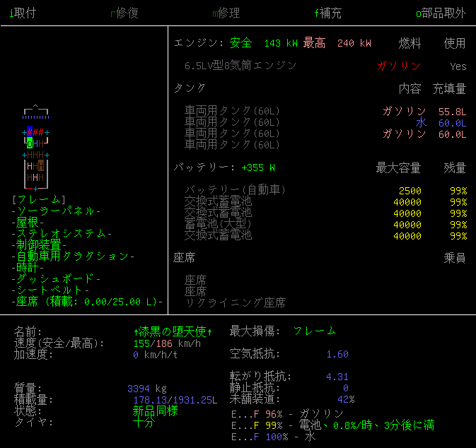 救急車の性能は上の画像になります。最近は公営住宅に手こずっているからガソリンの回収をしていません。徐々にガソリンの備蓄が減っていやがる。