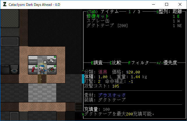 この投稿は「Cataclysm Dark Days Ahead」のプレイ日記です。毎日更新をします。目次はこちら。