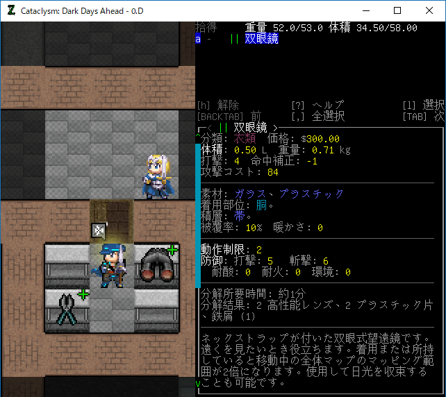うーむ、初めて双眼鏡をゲットしたのかな。説明文を読むにサバイバー望遠鏡と似た性能があるみたい。分解したら高性能レンズを回収できるので持ち帰ります。