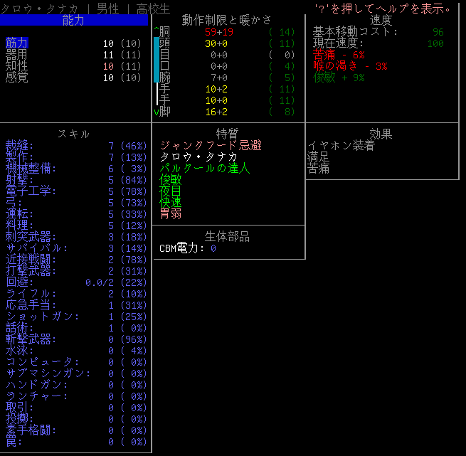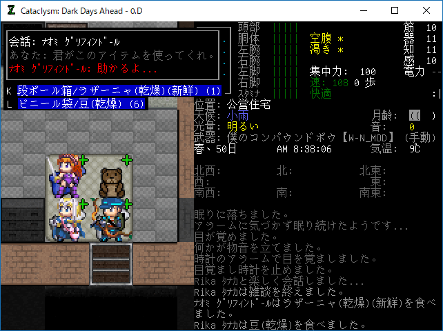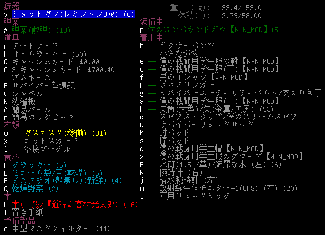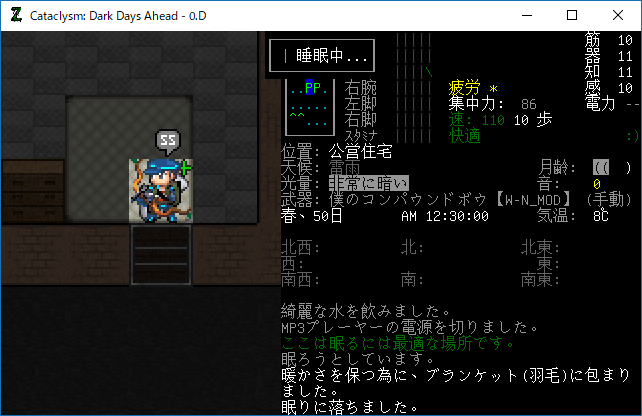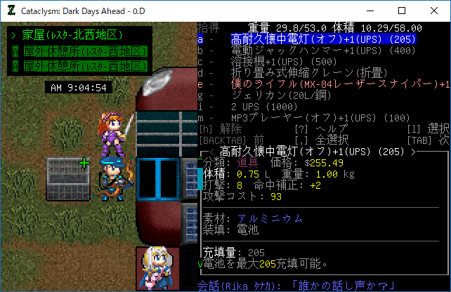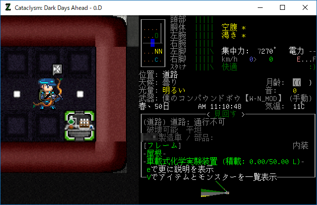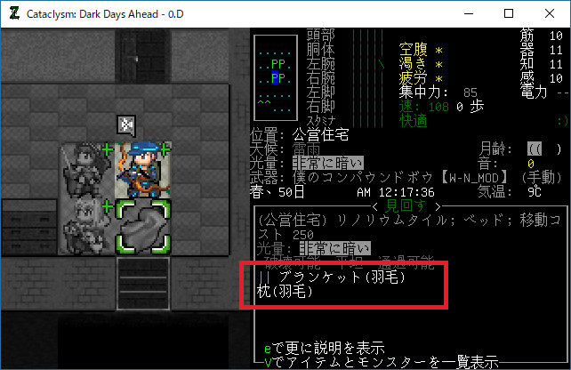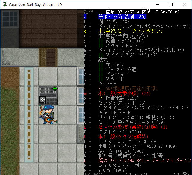 この投稿は「Cataclysm Dark Days Ahead」のプレイ日記です。毎日更新をします。目次はこちら。