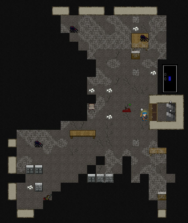 地下室に潜り込むんで部屋を観察してみよう。明らかに毒蜘蛛の数が減っているよな。マズいことになったぞ。食料はともかくキチンの塊を回収できなくなるのは厳しい。