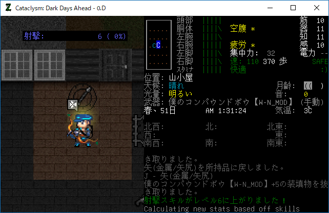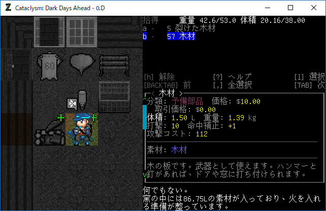 この投稿は「Cataclysm Dark Days Ahead」のプレイ日記です。毎日更新をします。目次はこちら