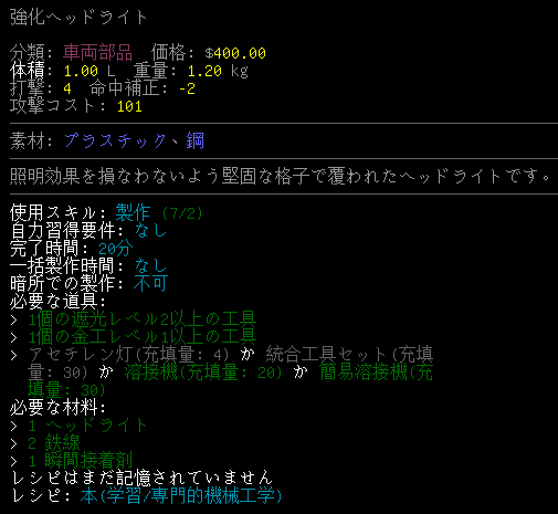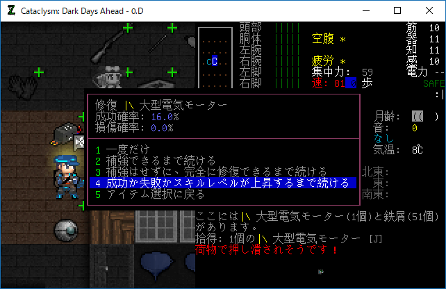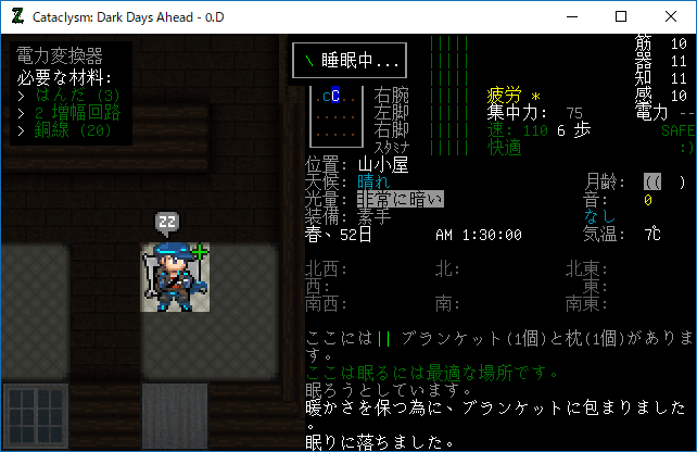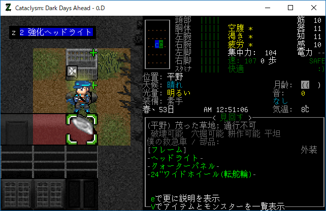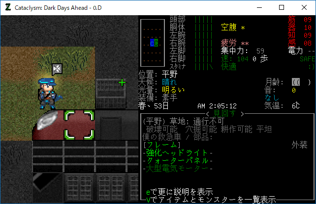 この投稿は「Cataclysm Dark Days Ahead」のプレイ日記です。毎日更新をします。目次はこちら。