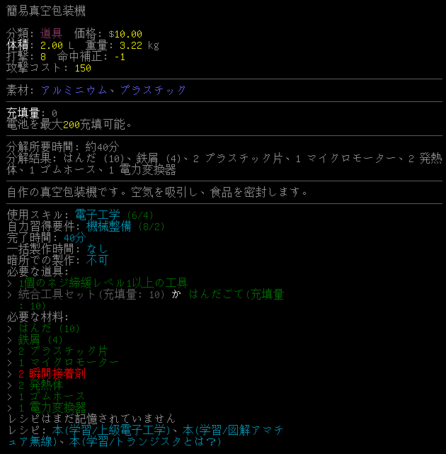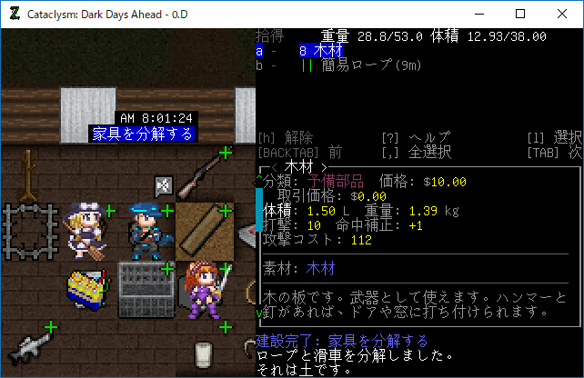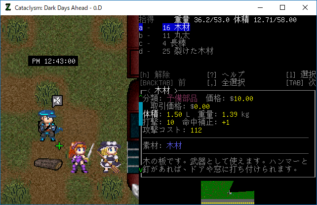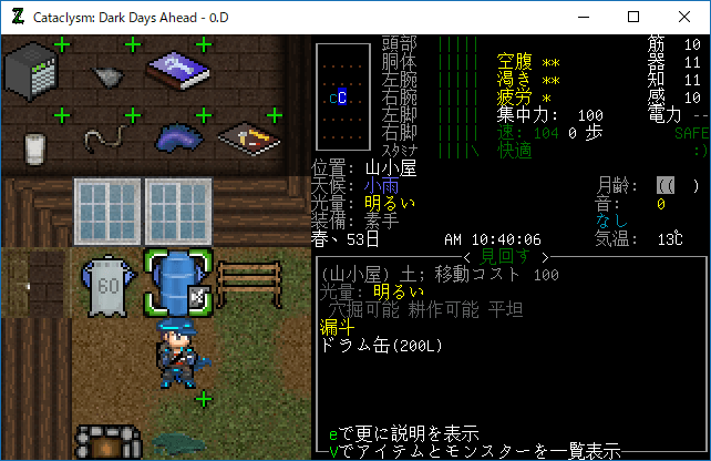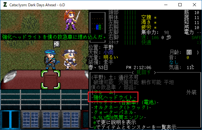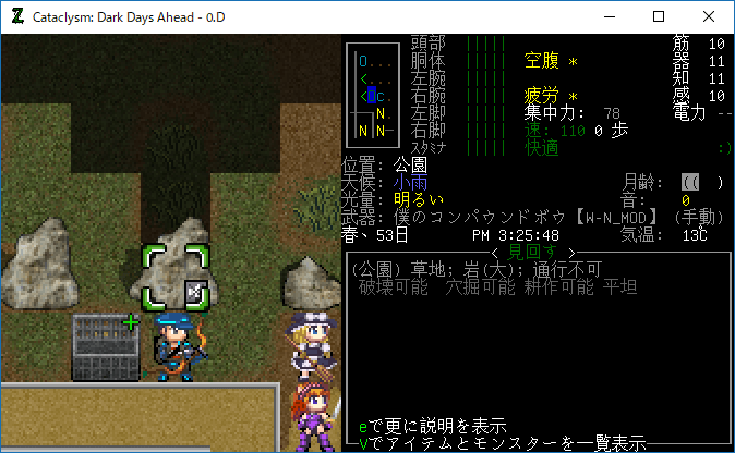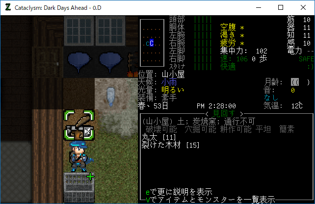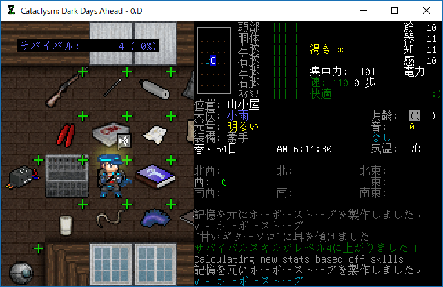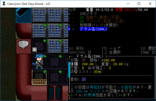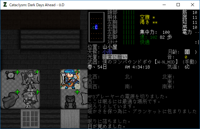 この投稿は「Cataclysm Dark Days Ahead」のプレイ日記です。毎日更新をします。目次はこちら。
