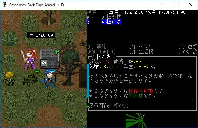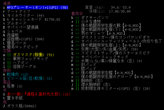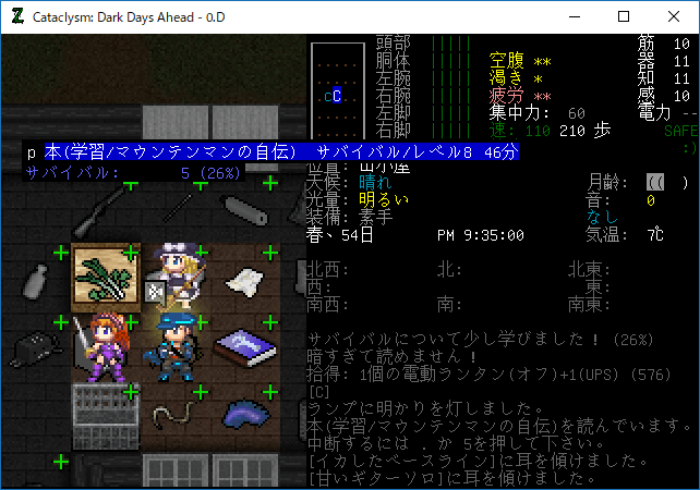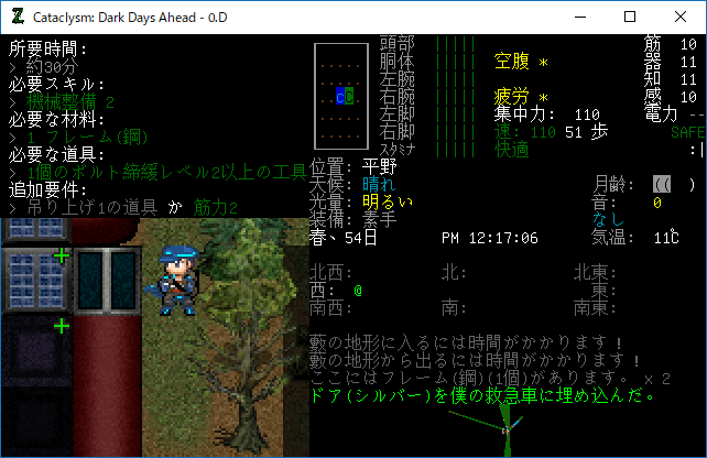 この投稿は「Cataclysm Dark Days Ahead」のプレイ日記です。毎日更新をします。目次はこちら。