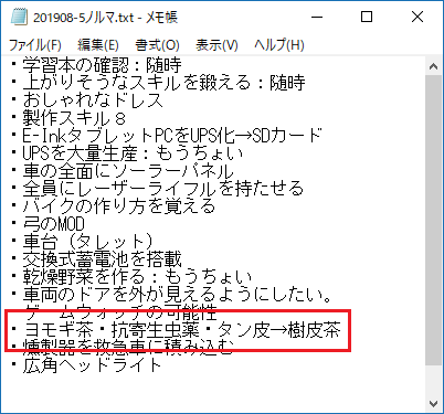 ヨモギも拾ったことがありません。近所の平野を歩いてみたけど見つからなかった。おそらく森林へ行けば手に入るのだろう。レスタ-東の森へ行くために自動車に乗るも違和感を覚える。運転席に座ると赤い四角で囲んだ部分が死角になるぞ。