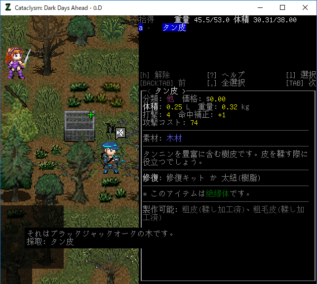 ブラックジャックオークの木から採取したのは『タン皮』だった!こいつは寄生虫を殺す樹皮茶の材料だ!ようやく目的のアイテムを拾うことができました!