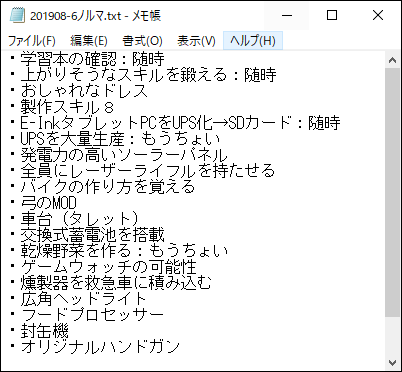 まだまだ作り足りないアイテムが沢山あるけど放置します。次から次へとノルマが増えていくから終わりが見えないのだ。町の探索と山小屋での作業を交互に繰り返しながらジックリと楽しもうぜ。